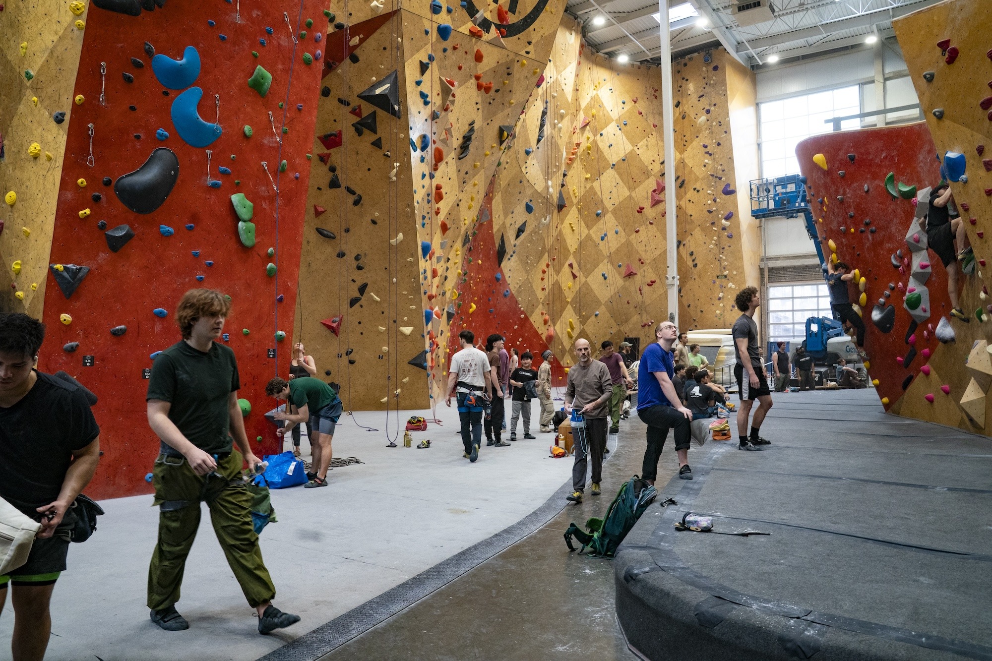 - Roped climbing (auto belay, top rope, and lead climbing) and bouldering